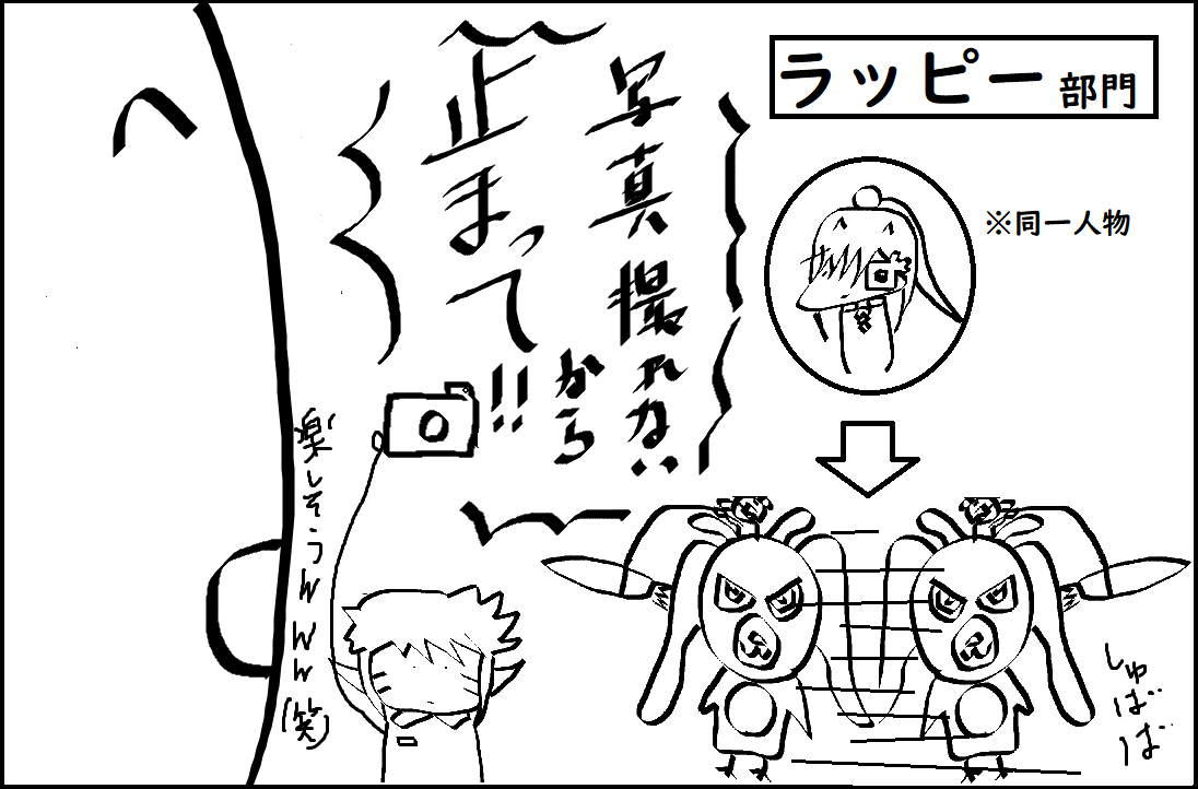モノマネ部門恥ずかしがって辞退したけどラッピー部門で大暴れ