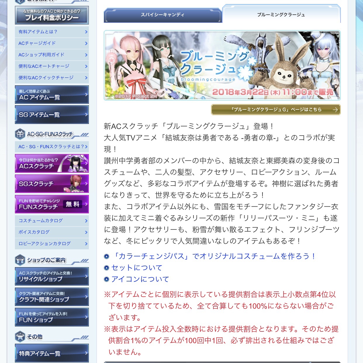 今回のスクラッチ【ブルーミングクラージュ】は3/22まで!