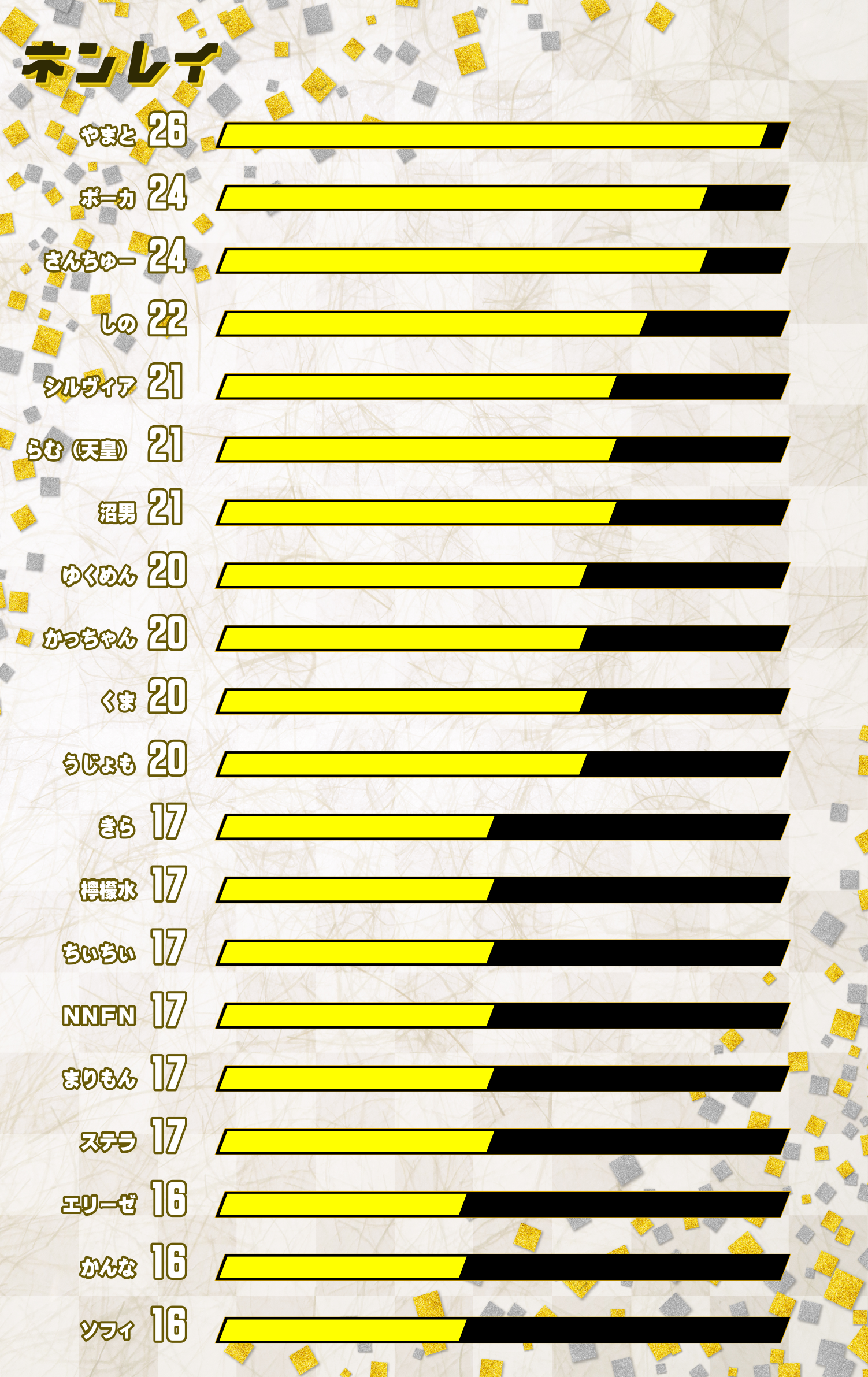 ※今回投票者は21人でしたので、最大点数も21点です。